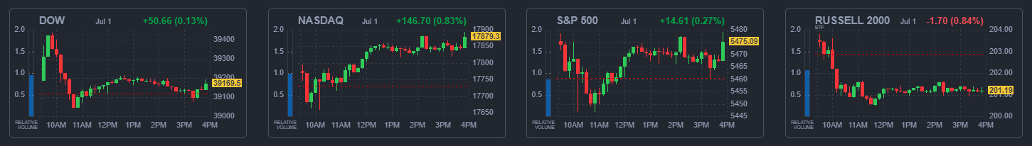 2024년 7월 1일(월) 하반기 첫 미국 증시는 기술주 상승에 힘입어 소폭 상승하는 모습을 보였습니다.