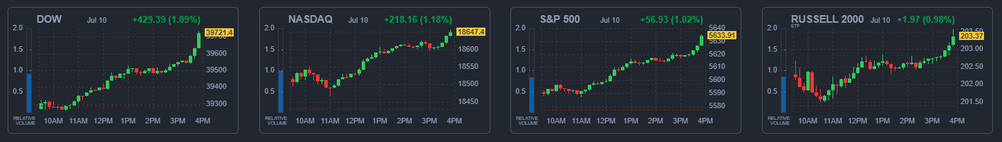 2024년 7월 10일(수) 미국 증시는 큰 상승 마감하였습니다.