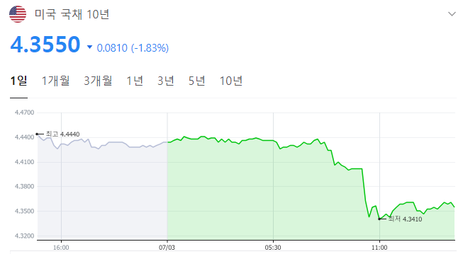 투자자들은 7월 5일(금) 6월 고용 보고서 발표를 앞두고 있으며 금일 발표된 경기지표가 채권에 호재로 작용하였습니다.