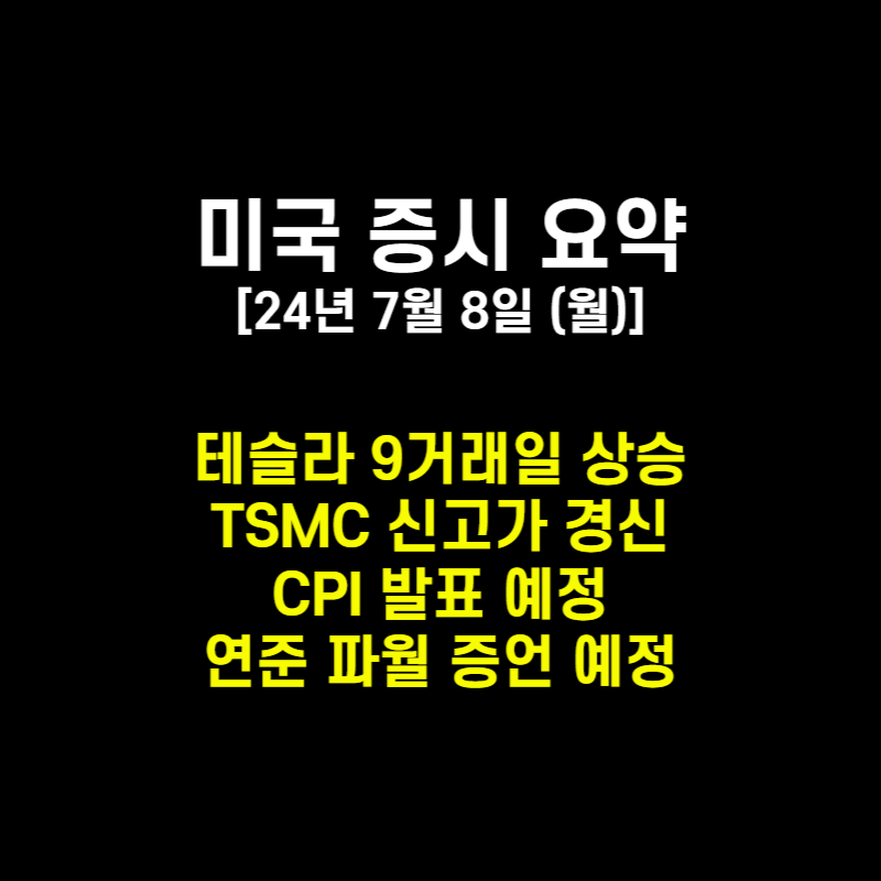 2024년 7월 8일(월) 미국 증시는 상승 마감하였습니다.